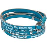 Heirloom Finds , This turquoise leather wrap bracelet is imprinted with the Serenity Prayer in silver lettering and accented with clear crystal studs. The overall length is 36" and the bracelet will wrap around your wrist 4 - 5 times, depending upon the size of your wrist and how tight you like it. The disk buckle makes it infinitely adjustable. The bracelet reads "God grant me SERENITY to accept the things I cannot change COURAGE to change the things I can and WISDOM to know the difference." The perfect anniversary gift for anyone in recovery. (Read More)